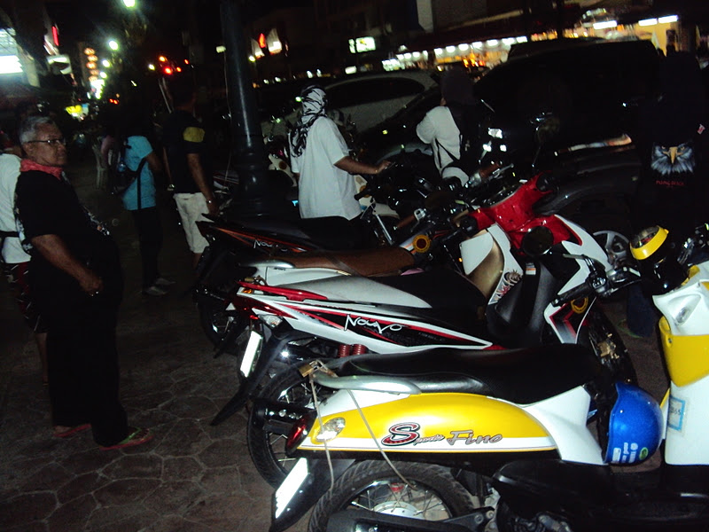 15 May 8:00pm: Kami semua dengan motor sewaan yang dibangggakan nak bergerak untuk makan malam di bandar Krabi sambil singgah di pasar malam krabi.Perjalanan agak jauh jugak.Dalam 20km.Macam biasa Tasha akan lead dengan Yahama Nouvo versi Siam.Aku berada di tengah kelompok konvoi follow macam biasa.Jalannya huhuhu banyak jugak kona-kona.Aku bawak motor skuter ni bukan biasa sangat,nak ambik kona pon rasa melayang jer.Tengah tiba-tiba syok melayan perasaan.Group depan aku tiba-tiba memecut.Mula-mula aku try kejar jugak.Aduh dengan jarak penglihatan yang tak berape best,aku lupakan niat nak kejar.Yela aku dah sekejap ke tengah,sekejap ketepi nak balance motor.Hehehe marah bang mat er6 kat aku.Heheh sori ye,mata tak nampak bang!